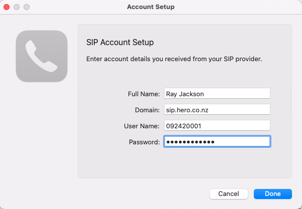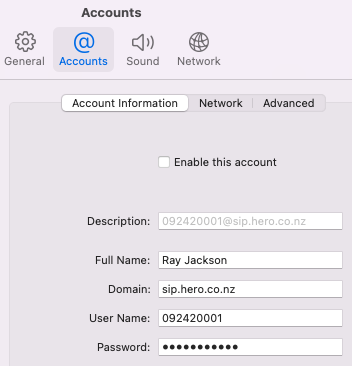 - Domain: Enter ‘sip.voip-nz.co.nz’