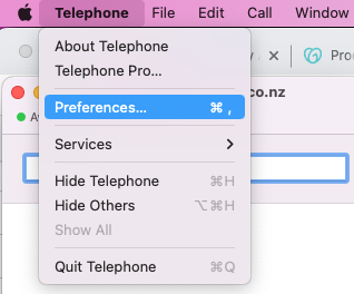Go to the Telephone menu at the top left of your screen and select ‘Preferences’: