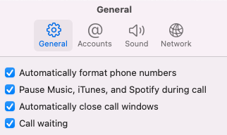 If you wish to make more changes to the behaviour of the App then please see the General section and the Sound and Network sections to select Microphone and Speaker/Headset outputs etc. If you also wish to reject any incoming calls when you are already on a call then untick the ‘Call waiting’ option in the General section.
